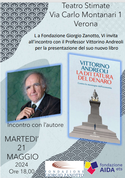La Fondazione Giorgio Zanotto Vi invita all’incontro con il Professor Vittorino Andreoli, per la presentazione del suo nuovo libro, il giorno 21 maggio 2024 alle ore 18 presso il Teatro Stimate, via Carlo Montanari 11, Verona.